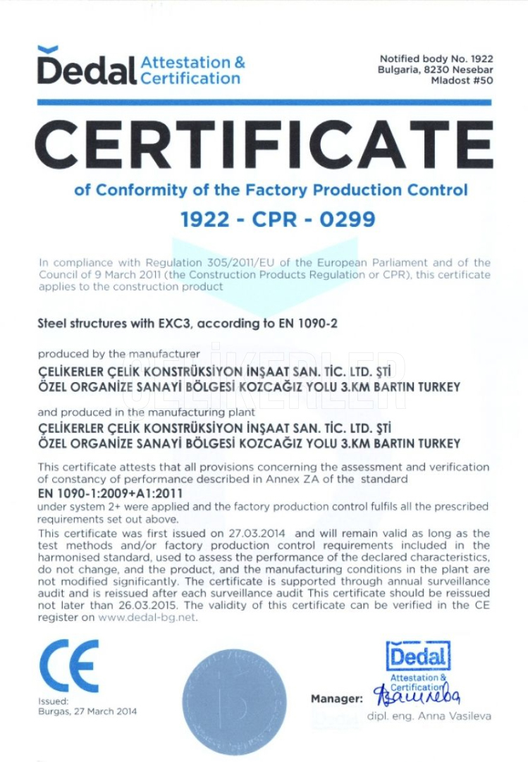 ÇELİK YAPILAR FABRİKA ÜRETİM KONTROLÜ UYGUNLUK BELGESİ