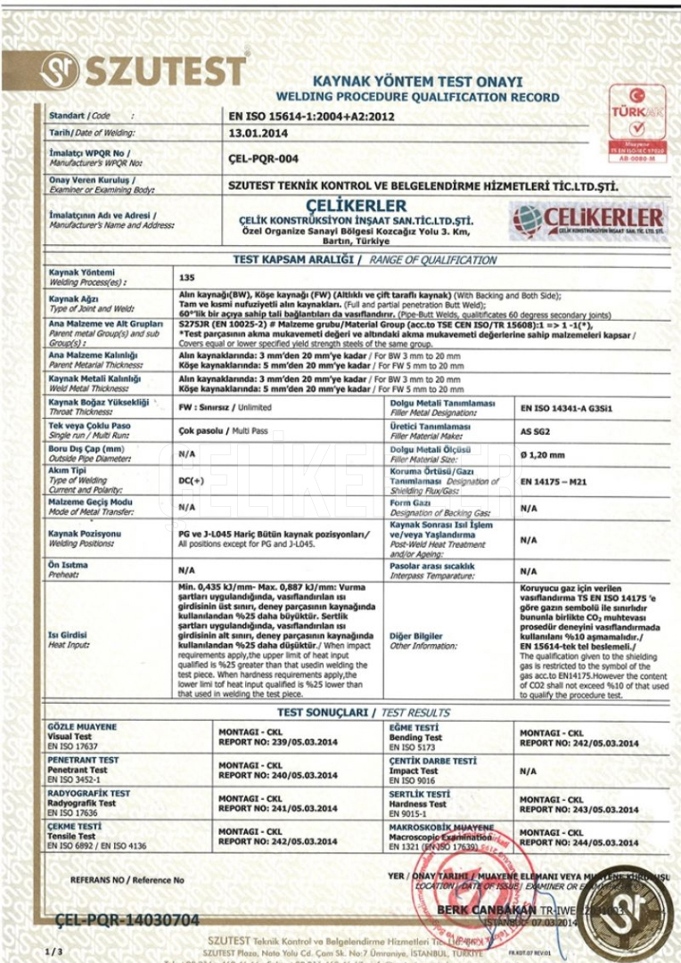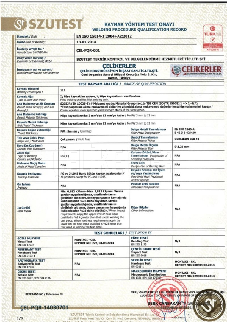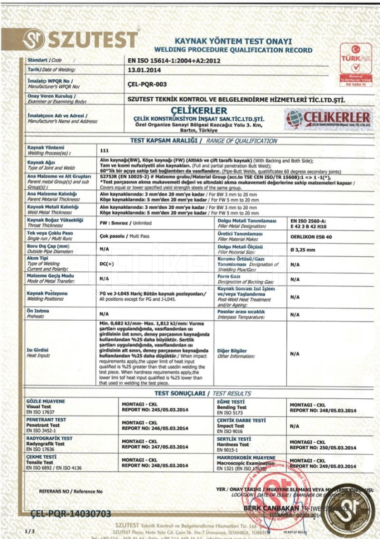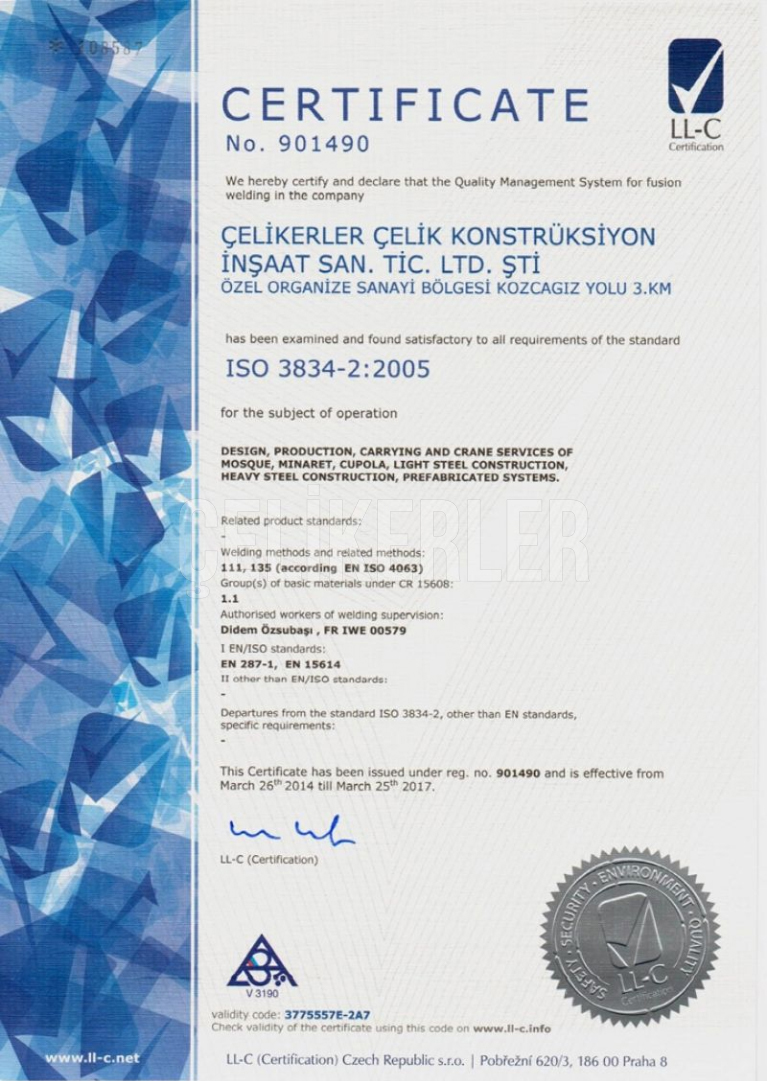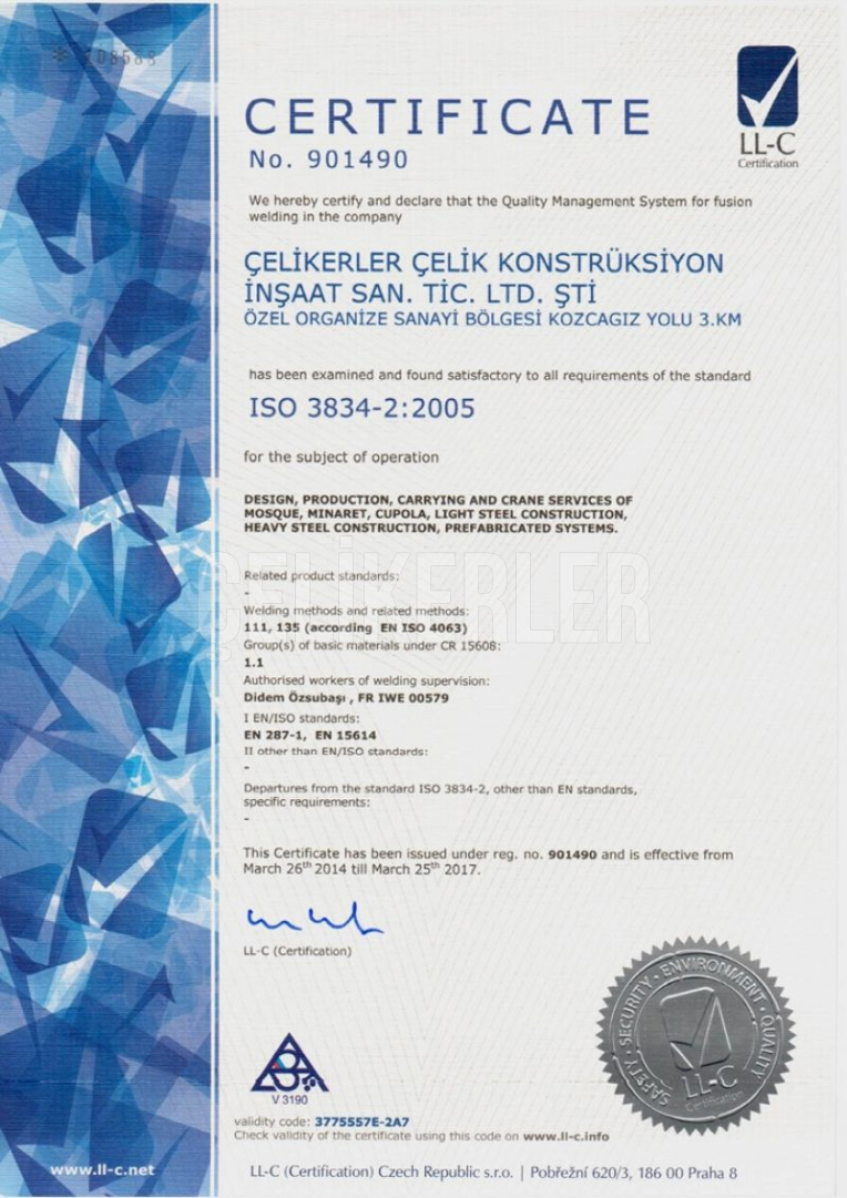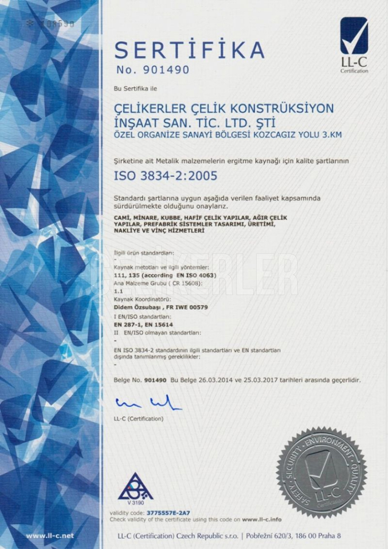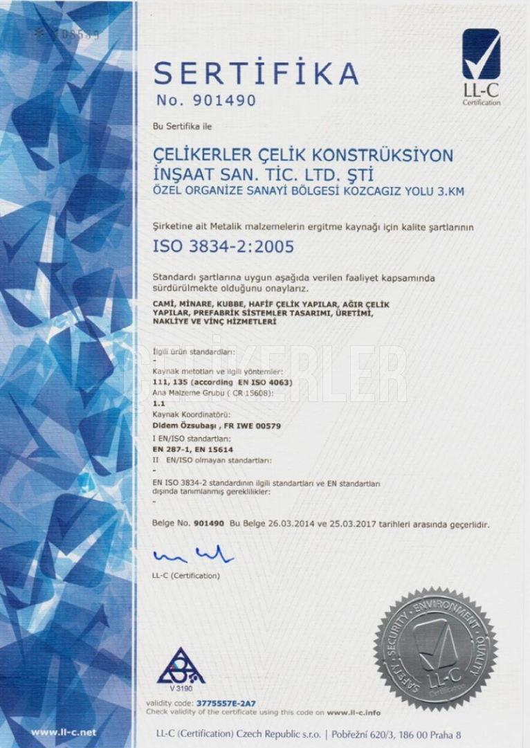 ISO3834 KAYNAKLI İMALAT YETERLİLİK BELGESİ 108589