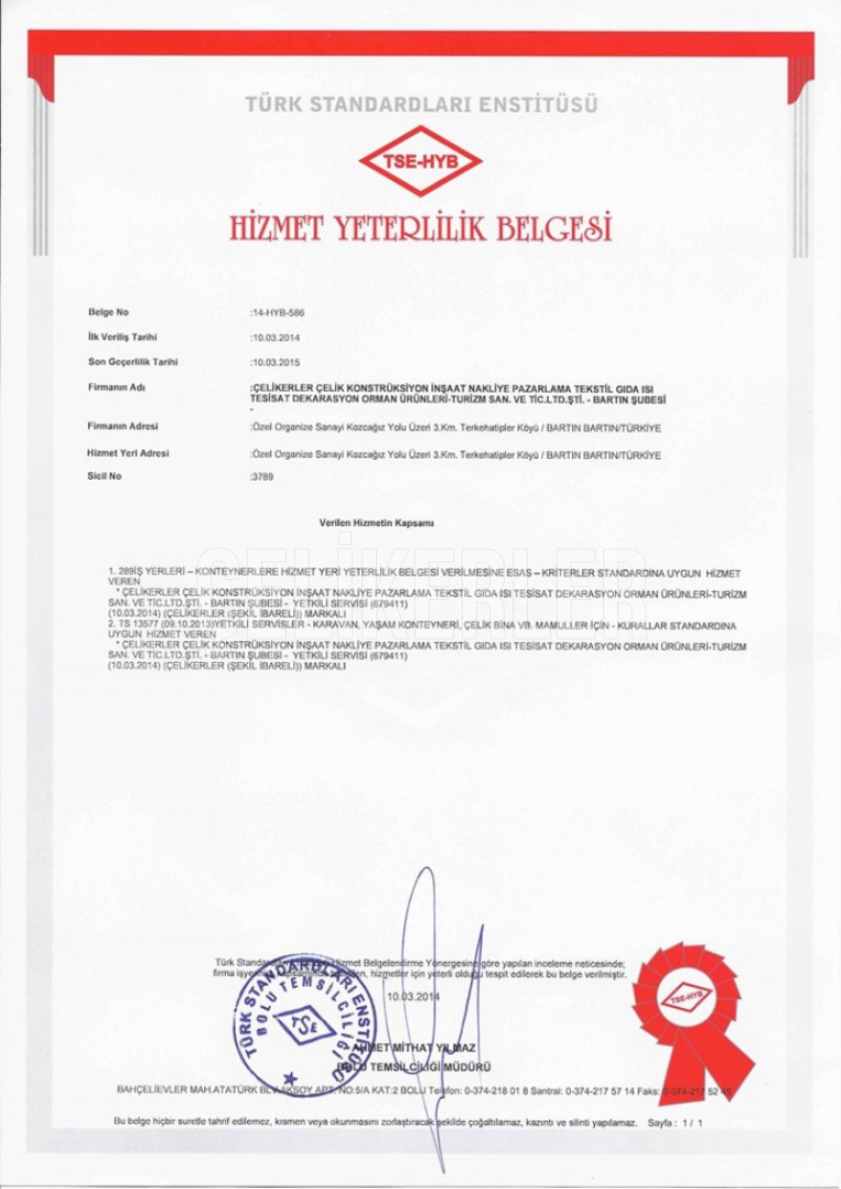 TSE-HYB HİZMET YETERLİLİK BELGESİ