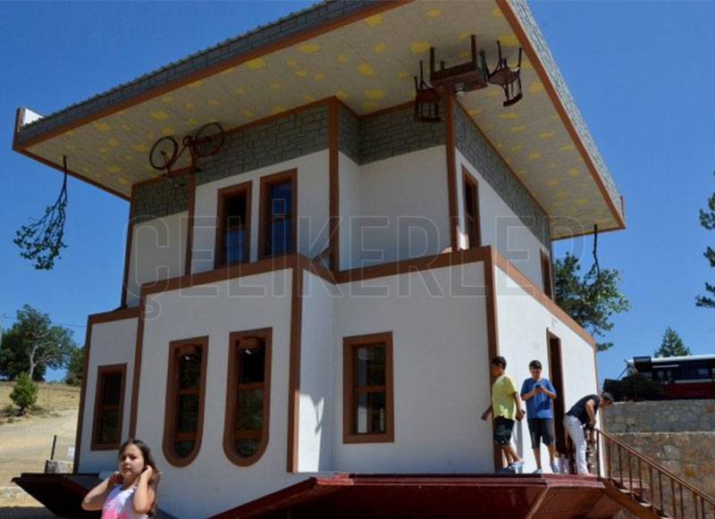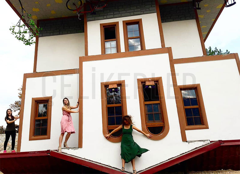 Karabük'ün Safranbolu ilçesinde, proje ve üretimini Çeliklerler'in üstlendiği, ters yapılan, eşyaların da tavana monte edildiği 'Tepetaklak Konak' yoğun ilgi görüyor. Safranbolu'ya bağlı Aşağı Danaköy'de girişimci Bilal Özdemir tarafından Çeliklerler'e yaptırılan ve Ağustos ayında ziyarete açılan 'Tepetaklak Konak', mimari yapısı ve eşyaların dizilişi nedeniyle ziyaretçilerden yoğun ilgi görüyor.